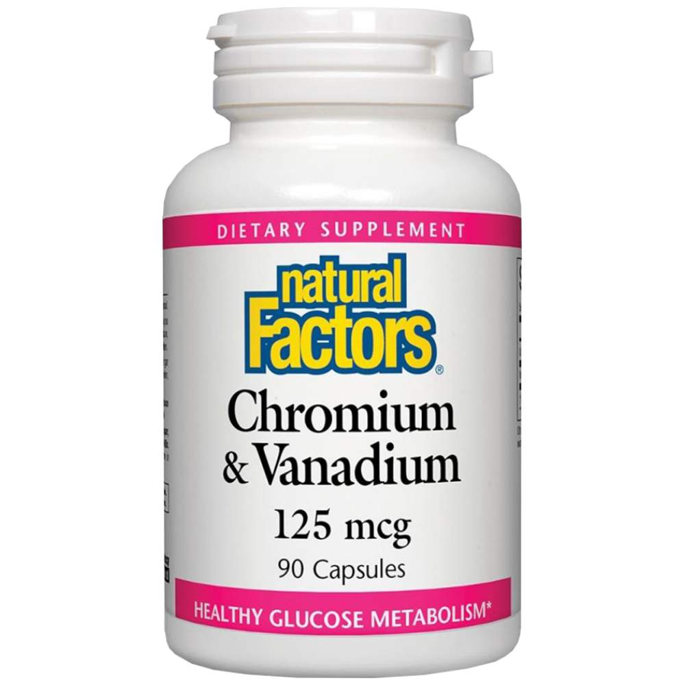 В продукта на Natural Factors, Canada, ванадият и хромът са хелатирани с цел подобряване на абсорбцията. Благодарение на това, могат да се приемат със също толкова голям успех и при храносмилателни смущения.